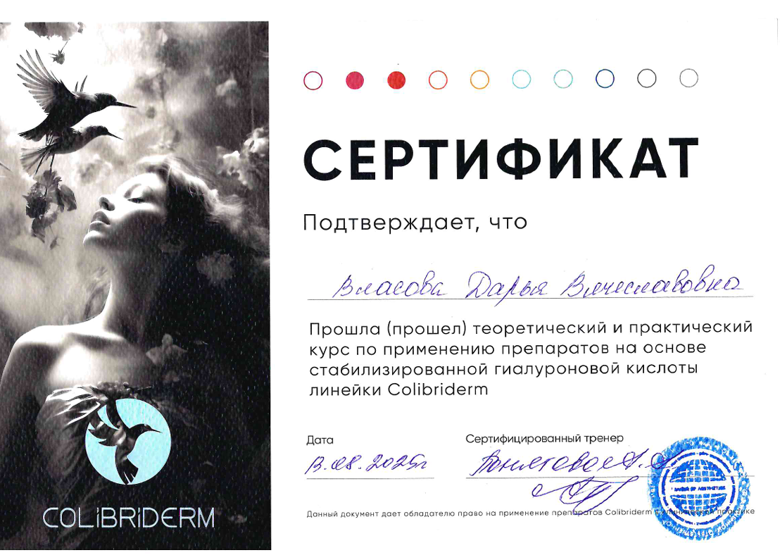 - Повышение квалификации по профессиональной программе «Косметология», 2019.